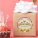 Sunflowers with red gingham check background and a rooster weather vane rustic country picnic wedding label design.