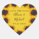Sunflowers rustic modern script wedding save date heart sticker