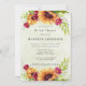 Design features a printed coloured with floral element in shades of yellow, pink and green over greenery leaves and sunflowers on a light green watercolor background.. Great for your wedding celebrations!