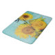 Sunflowers (1888) Vincent van Gogh. Still life on a blue background. A bright bouquet of sunflower flowers stand in a vase. Reproduction of famous works of art images in the public domain.