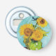 Sunflowers (1888) Vincent van Gogh. Still life on a blue background. A bright bouquet of sunflower flowers stand in a vase. Reproduction of famous works of art images in the public domain.