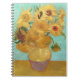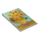 Sunflowers (1889) Vincent van Gogh. Still life on a blue background. A bright bouquet of sunflower flowers stand in a vase. Reproduction of famous works of art images in the public domain.