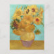 Sunflowers (1889) Vincent van Gogh. Still life on a blue background. A bright bouquet of sunflower flowers stand in a vase. Reproduction of famous works of art images in the public domain.