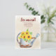 Change of address/moving announcement postcard with bright yellow sunflowers in a vintage antique metal watering can on a watercolor background.
