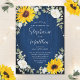 Sunflowers White Roses Navy Lights Wood Wedding Invitation