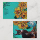 SUNFLOWERS WITH BLACK CAT IN BLUE TURQUOISE BUSINESS CARD