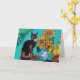 SUNFLOWERS WITH BLACK CAT IN BLUE TURQUOISE CARD