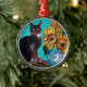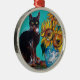 SUNFLOWERS WITH BLACK CAT IN BLUE TURQUOISE METAL ORNAMENT
