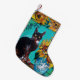 SUNFLOWERS WITH BLACK CAT IN BLUE TURQUOISE SMALL CHRISTMAS STOCKING