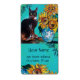 Expressive ,whimsical black cat ,colourful sunflowers and green leaves in yellow and turquoise blue colours. Artistic and vibrant original acrylic painting on wooden panel by Bulgan Lumini (c)