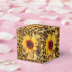 SUNFLOWERS WITH LEOPARD FUR BOW SUMMER PARTY FAVOR BOX