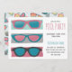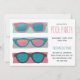 Fun hand illustrated art print featuring a trio of sunglasses in shades of pink, blue and gray sitting on distressed backgrounds. Great for a pool party, a barbeque or just a fun summer get together.