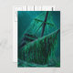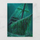 A sunken ship, shrouded in seaweed, rests on the ocean floor. Light filters through the water, casting an eerie glow.
