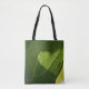 This tote bag features an original photograph where sunlight naturally forms a heart on a leaf.