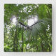 Sunlight Through Rainforest Canopy Tropical Green Square Wall Clock
