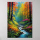 Elevate your space with the captivating allure of a poster showcasing a vibrant digital artwork. Immerse yourself in a scene where a colourful forest comes alive as the sun peeks through the trees. A gentle stream rushes down rocky ground, adding a touch of nature's music. This poster captures the harmonious interplay of light, colour, and movement, inviting you to wander into the beauty of a vivid woodland.