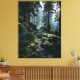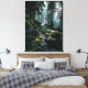 Golden sunlight pours through towering evergreen canopies, illuminating a winding stone path blanketed in soft moss and scattered rocks. Mist drifts gently among ferns and tree trunks, diffusing the warm rays into a dreamy, almost sacred glow. The composition radiates profound calm, timeless solitude, gentle renewal, the quiet magic of untouched wilderness, and the call to step deeper into nature’s embrace—perfect for meditation rooms, bedrooms, home offices, therapy spaces, nature-inspired living areas, or as soul-soothing gifts for hikers, mindfulness seekers, forest lovers, or anyone craving peace, grounding, daily inspiration, or reminders of inner stillness.