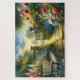 Step into a storybook moment with this enchanting garden scene, where soft golden sunlight filters through lush trees and spills across a cobblestone path leading to a welcoming open gate. Bursting with vibrant cottage blooms—dahlias, hollyhocks, foxgloves, and delphiniums—the garden brims with life and color, painted in soft pinks, sunny yellows, and deep corals that blend seamlessly with cool lavender and sky blues. A rustic wooden bench nestled among the flowers invites quiet reflection, while dappled light and painterly textures evoke a peaceful, whimsical mood. The overall style is dreamlike and romantic, steeped in cottagecore nostalgia and wrapped in the cozy serenity of an early morning bloom. AI generated artwork.