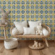 Brighten up your home with the radiant beauty of our "Sunlit Splendour" Peel & Stick wallpaper. This vibrant design features intricate Azulejo tile patterns in striking shades of blue and yellow, capturing the essence of Mediterranean elegance. The bold geometric and floral motifs, set against a creamy white background, create a dynamic and eye-catching look, perfect for enhancing kitchens, bathrooms, or feature walls. Crafted from high-quality peel and stick material, this wallpaper ensures easy application and removal, making it an excellent choice for both renters and homeowners seeking to add a touch of timeless charm to their decor.