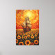 Bring a touch of dreamlike fantasy into your home with this amazing surrealist painting. This unique work of art features a majestic multi-masted sailing ship sailing through an endless and vibrant field of blooming sunflowers. The sky above the swirls with thick and expressive brush strokes in warm shades of orange, yellow and red, reminiscent of scorching sunsets and classical post-Impressionist masterpieces. The warm colors and imaginative concept make this piece a perfect conversation starter and a beautiful addition to any room.