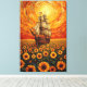 Sunlit Sunflower Sea - Whimsical Sailing Ship Fan Canvas Print
