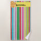 Personalize this bright colourful striped towel for the pool or beach with your own name or other optional text. Just edit your text in the easy Zazzle editor and choose your size. Available also on several tote bag styles at www.zazzle.com/store/beebagsandcases