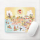 Bright and charming mouse pad is a spectacular cartoon of Southern California – Los Angeles, Anaheim, Long Beach, San Diego. This charming scene has it all – a surfer hangs ten while a mermaid lounges on a rock, a killer whale leaps out of the water, a muscular beach couple both flex to impress, zoo animals wait for tourists and a bull smashes into a bull fighter…