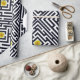 Geometric design with a pattern of black mazes leasing to a yellow flower of Dandelion.