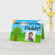 Adorable Kid's Children's Father's Day card you can customize online by adding your very own digital photo. Just upload a picture! Cute sunny day spring or summer scene with green grass, a green tree, blue sky with clouds and sun, and flowers in the field. Fun and bright cheerful summer father's day card from any son or daughter.