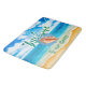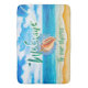 Blue skies, calm waters, warm sands, the perfect recipe for great vacation. Set the welcome mat out with this watercolor medley of blue waters, seashell and beach.