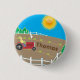 Children's gifts and accessories with brightly coloured graphic art of a farmer in his tractor tending to his farm on a sunny day. Personalized with your child's name in the freshly plowed field.