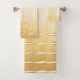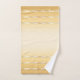 An elegant bathroom towel set featuring a wavy design in sunny ochre yellow and ivory with gold. Great to create an airy and light atmosphere in the bathroom.