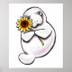 Manatee lovers, spread some happiness all year round with this original ink and pencil illustration of a manatee hugging a sunflower by Andie of Off-Leash Art™.