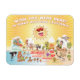 A cartoon of Southern California – showcasing Los Angeles, Anaheim, Long Beach, San Diego. Cartoon characters of all sorts swim and splash and play beneath the bright California sun shining high above it all.