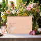 This chic wedding suite with it's warm sunny colour palette, handwritten script font and delicate wildflower arrangements has a timeless and sophisticated look that will impress your guests and help make your special day unforgettable. The striking guest book, shown here on an optional sunny apricot background with an airy wildflower border, provides a template to easily add your names, wedding date and location. Search ID1023 to see all the products in this wedding suite.