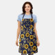 Sunny Yellow Gold Navy Sunflowers Leaves Monogram Apron
