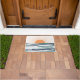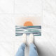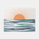 Abstract illustration of sunrise with orange sun and blue, white and turquoise sea waves decoration