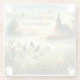 Sunrise Church with Birds in Misty Meadow Glass Coaster