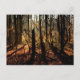 Sunrise in the winter forest with trees and shadows, Postcard