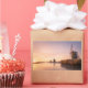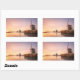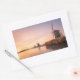 Photo sticker with a landscape with a row of three traditional windmills and reeds along a frozen river during a colourful sunrise in winter in Leidschendam in the Netherlands.