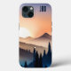 This cell phone case with rustic mountain landscape at sunrise can be personalized with your desired initials.