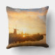 Photo throw pillow cushion with a vibrant sunrise over a row of windmills and reflection in the water of the river on a beautiful morning in a countryside landscape in Kinderdijk in the Netherlands.