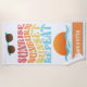 This fun towel displays the anthem of summer with colours of red, orange, yellow and aqua. The design also features sunglasses and a sun setting over water. Perfect for pool, lake, ocean, or anywhere you have summer fun. Personalize it with your name or initials and never lose your towel again.