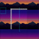 This fabric is printed with an endless scene of the sun setting behind mountains. The landscape is a tile that joins seamlessly left to right. The sun is low on the horizon so there is only a little bit of yellow left in the sky before it shades into purple then dark blue. The hills are dark and silhouetted against the sky.