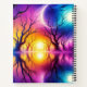 This notebook has an artsy sunset scene on it.