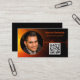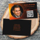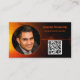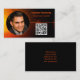 This professional card features a black and orange sunset look background with some text and QR Code placeholder on the front and other details over a black background in the back. Personalize the text fields, remove text or customize it to select a font style, size, and colour you prefer. Replace the photo and QR code with yours. A square photo works best. Use the QR code link to to send potential customers to reviews, photos or your website.