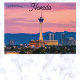 This postcard features a beautiful sunset at Las Vegas Strip, Nevada. Photo credit: ross stone, 2022.