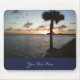 The tranquil scene of a sun setting across the calm ocean paired with soft swaying palm trees creates an inviting atmosphere, perfect for transforming any space into a peaceful retreat where you can unwind and relax.