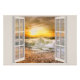 A beautiful wave crashing onto the shore at sunset, as seen through an open window, add a sense of peace and calm to your home.
