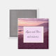 A beautiful pink and mauve sunset taken on the beach in Hawaii. Gentle waves and soft sand accent it. Customize with names and wedding date as desired.